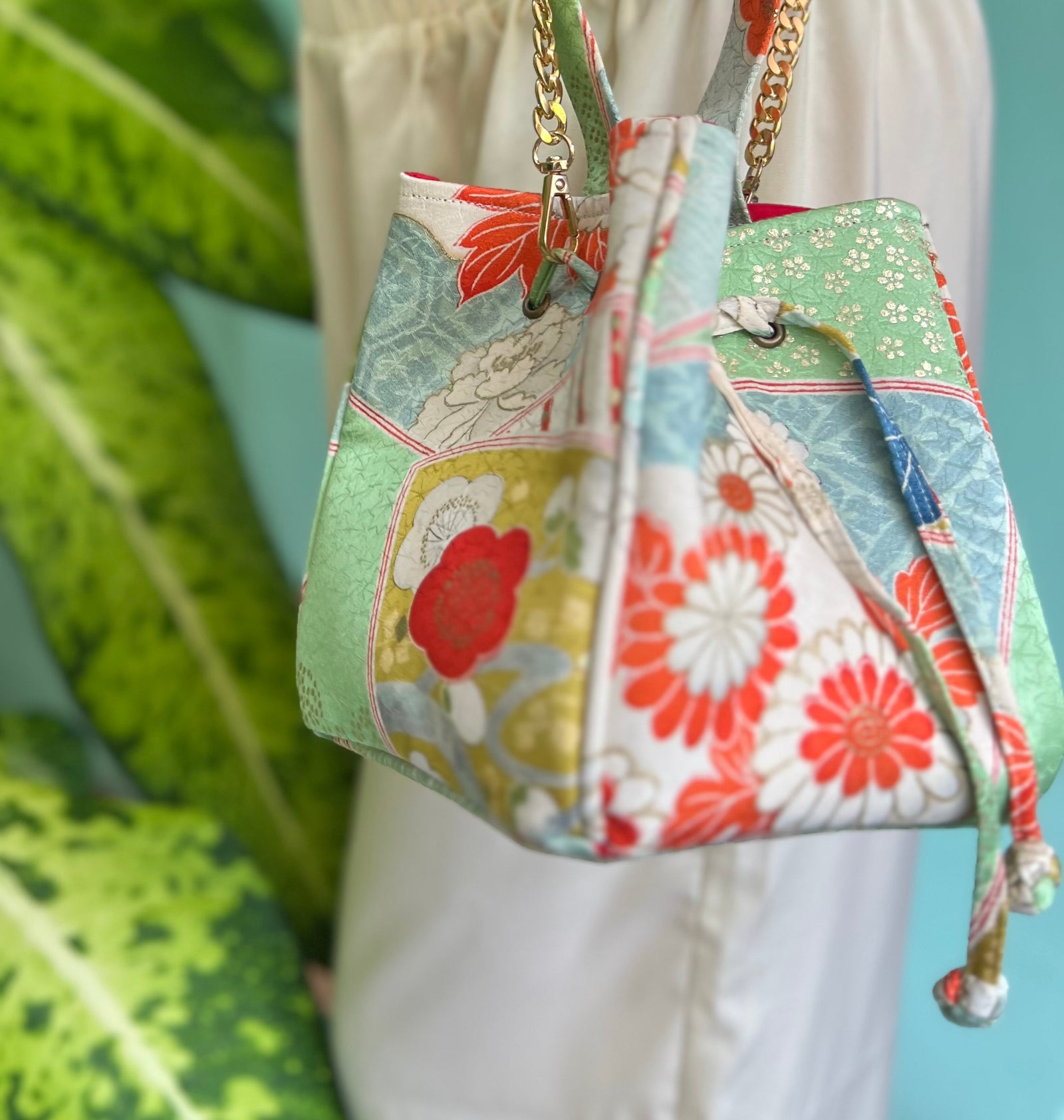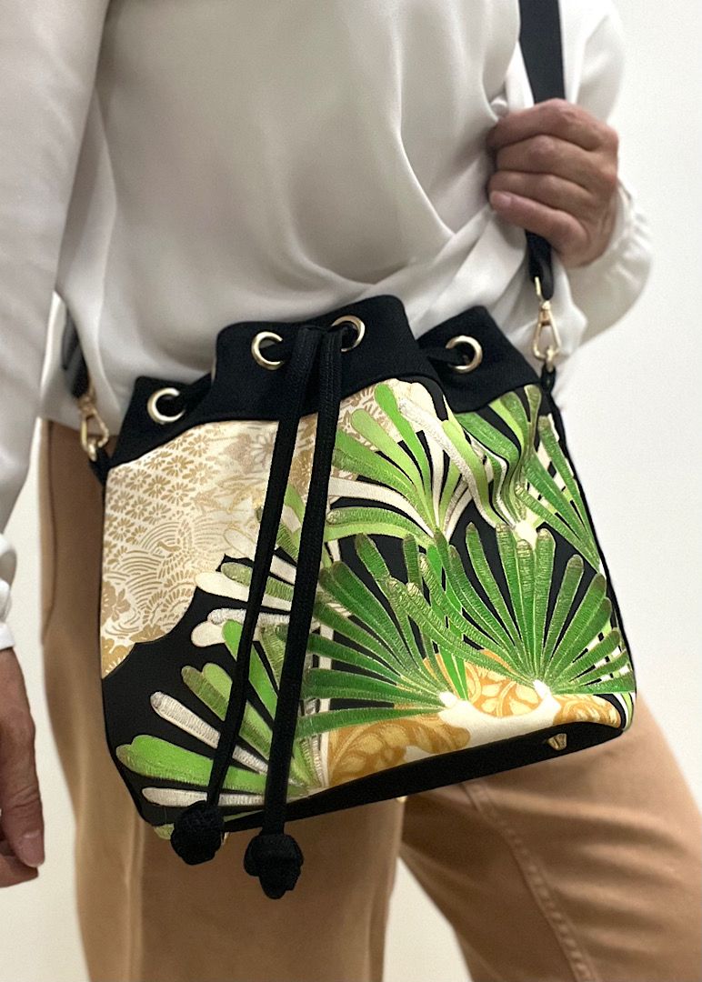 Look glamorous but stay practical and hands free with a unique drawstring bag handmade from kimono or a backpack made from obi fabrics.