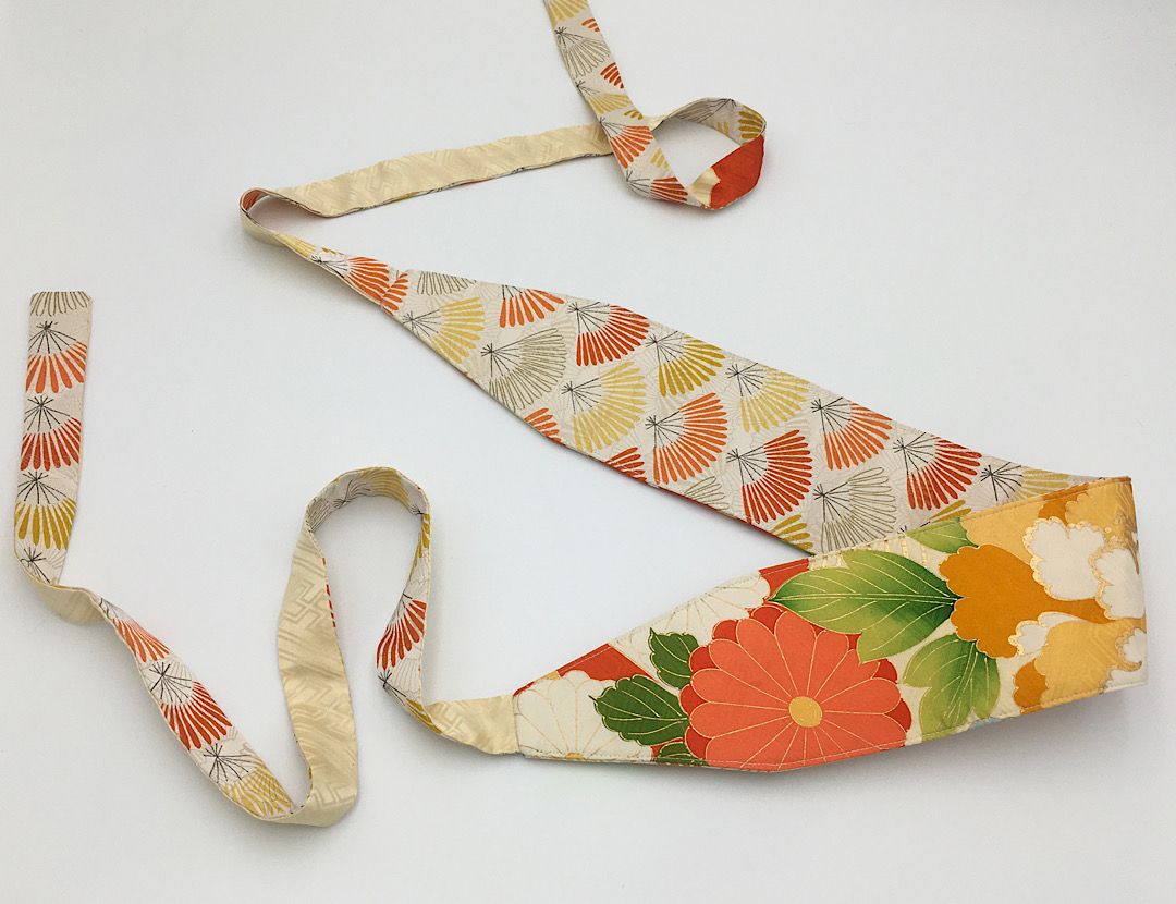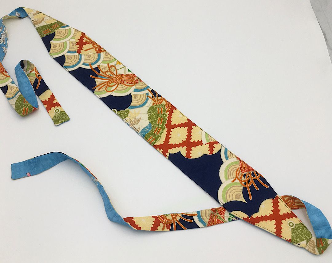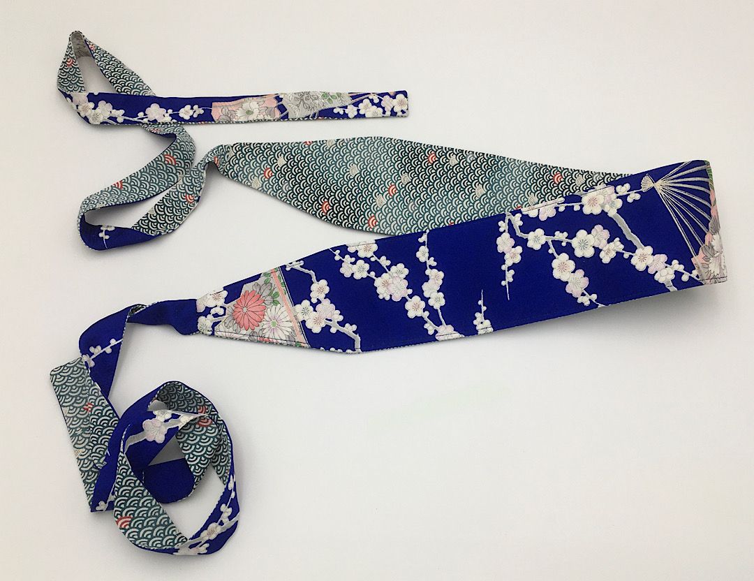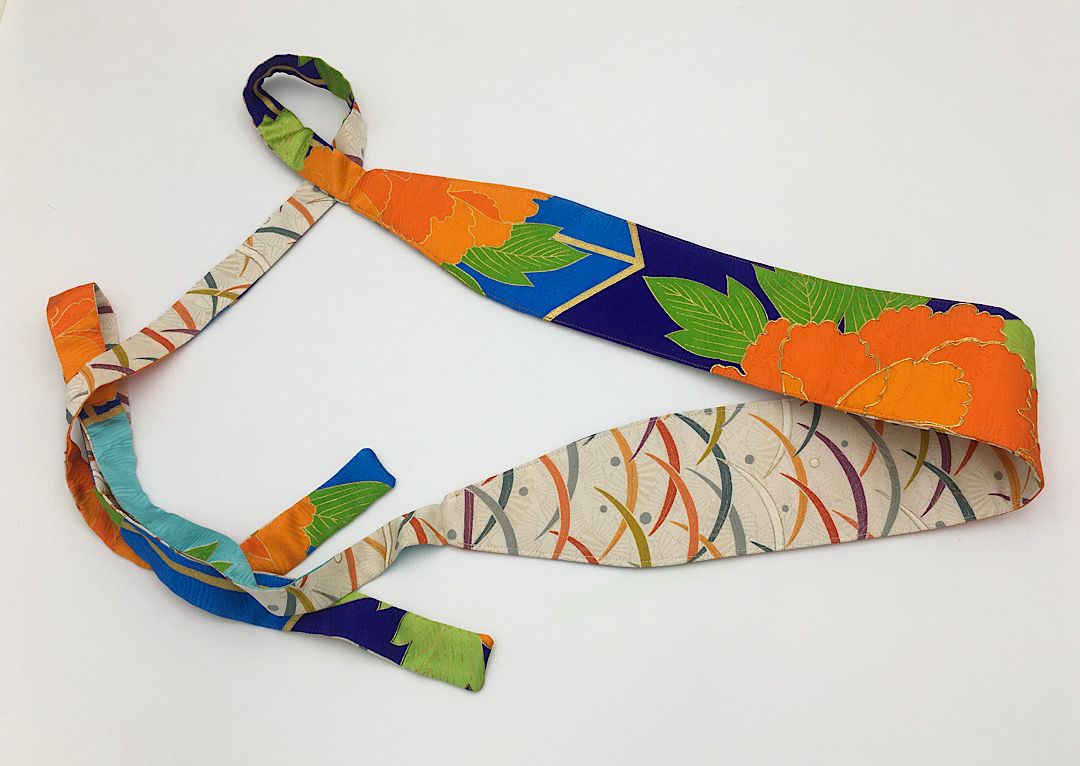 These unique belts are made from fabric from two contrasting vintage kimono fabrics: they are reversible and can be worn...