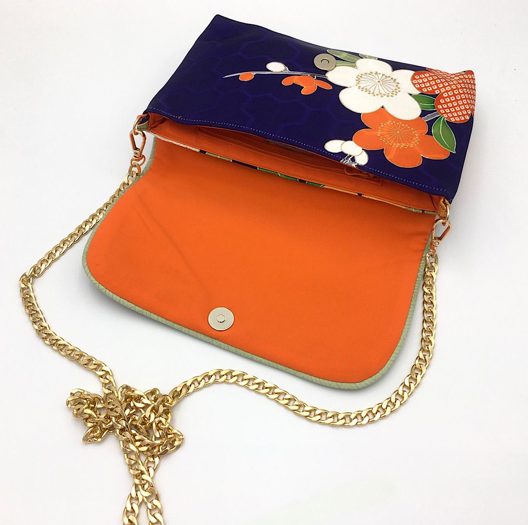 Our stylish and functional purse, hand made from vintage kimono: use as a travel accessory, as it can accommodate passports...