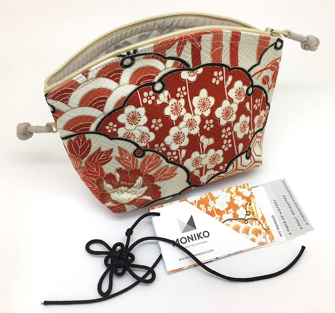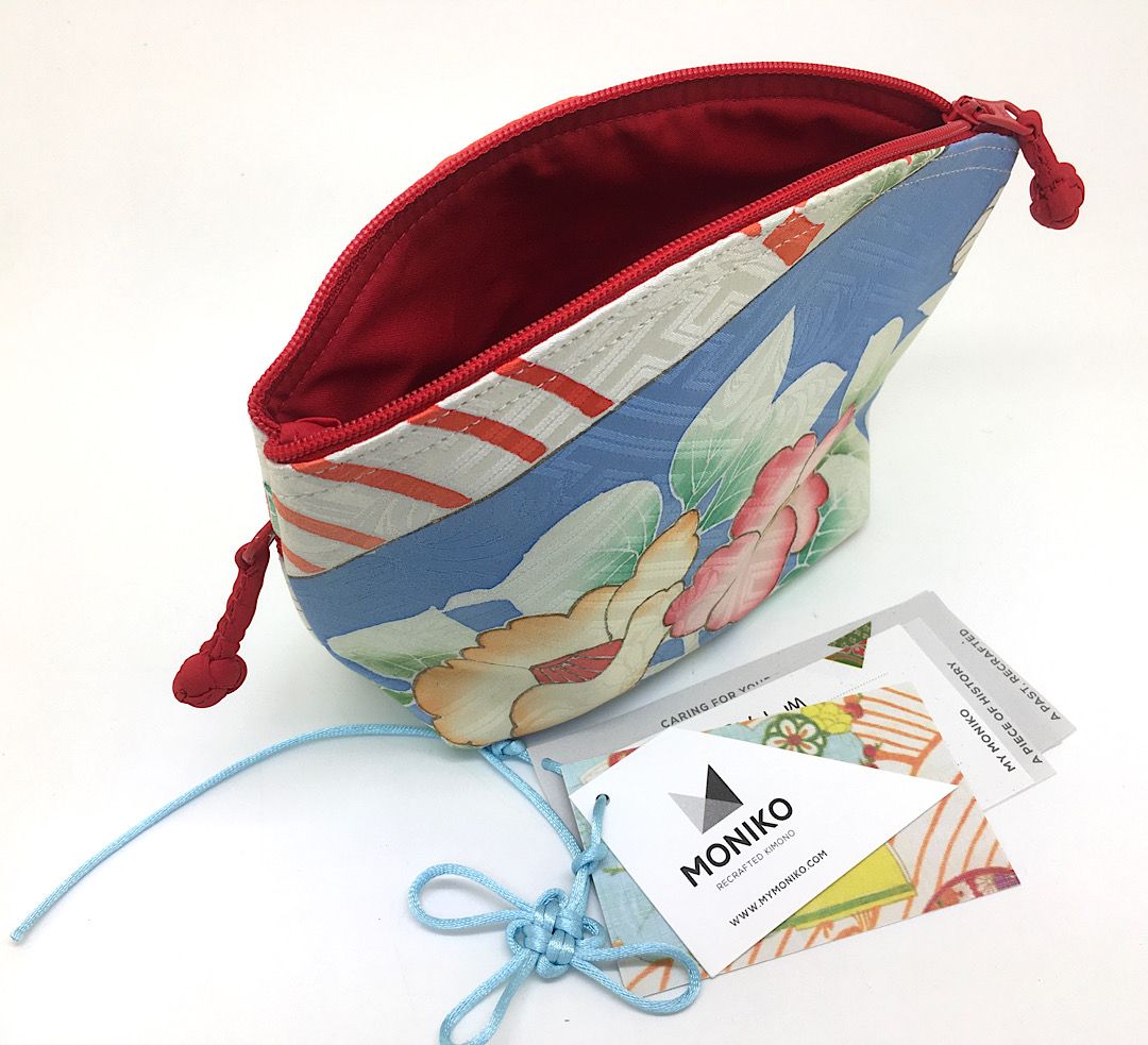 Wristlet pouches to carry a few essential items or make up when travelling or out and about, in 2 sizes Migi small (for smaller items) and Hidari larger (best for phones and passports). The Hashi pouch is designed to be a make up pouch and has a base panel so it can stand up.