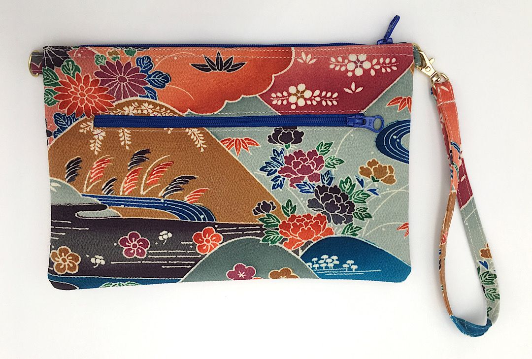 This flat pouch / bag has one large zippered top section and another zip in one side which can fit most phones, for easy access.