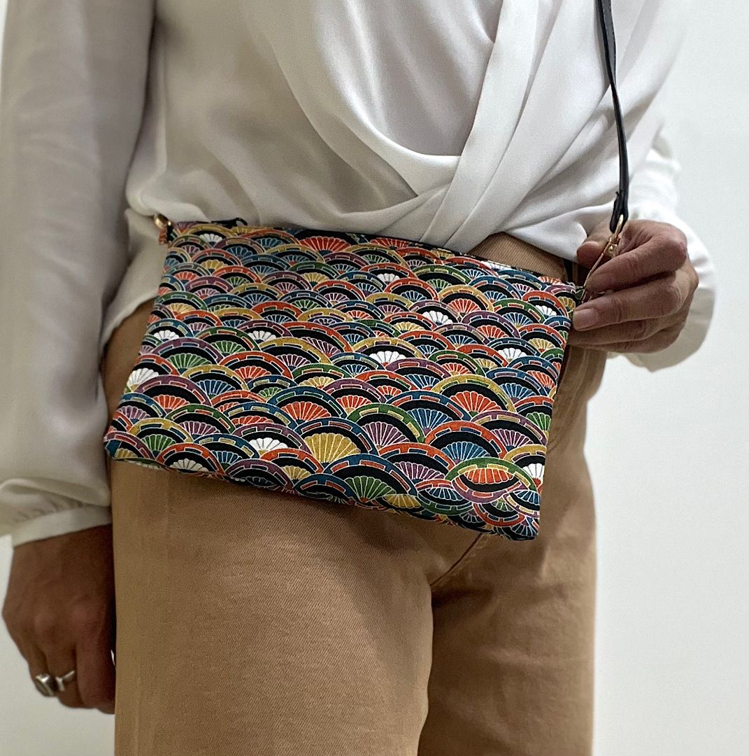 This flat pouch / bag has one large zippered top section and another zip in one side which can fit most phones, for easy access.