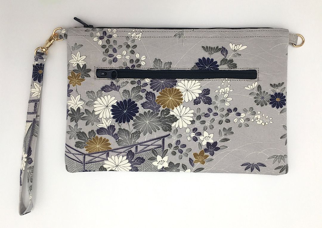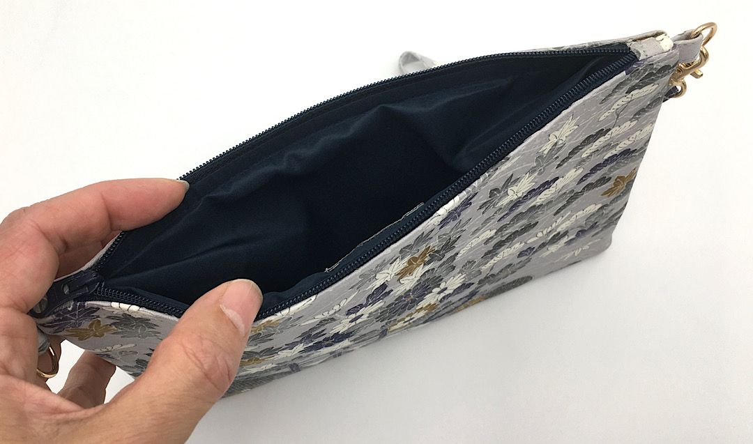 This flat pouch / bag has one large zippered top section and another zip in one side which can fit most phones, for easy access.