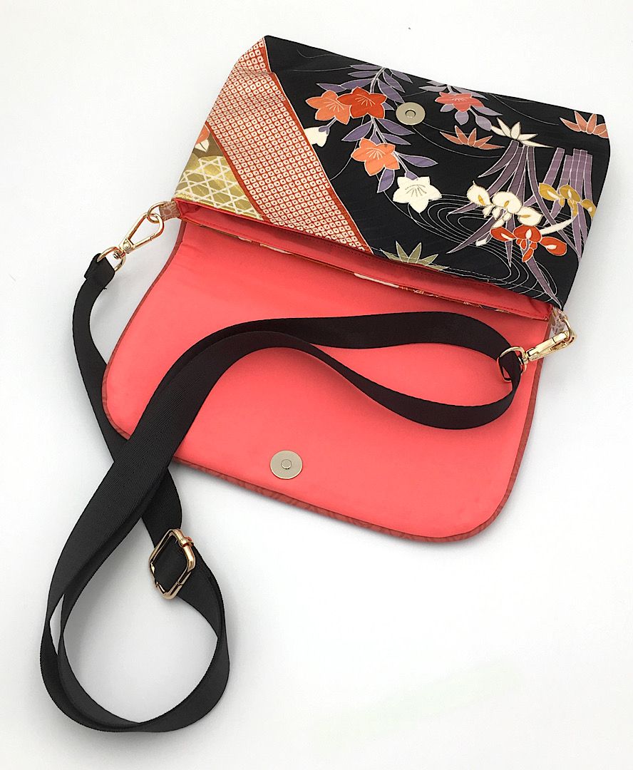 These clutches / slings are made from the Furisode kimono: worn on more formal occasions. These are usually worn by unmarried ladies: they can be identified by their longer sleeves.