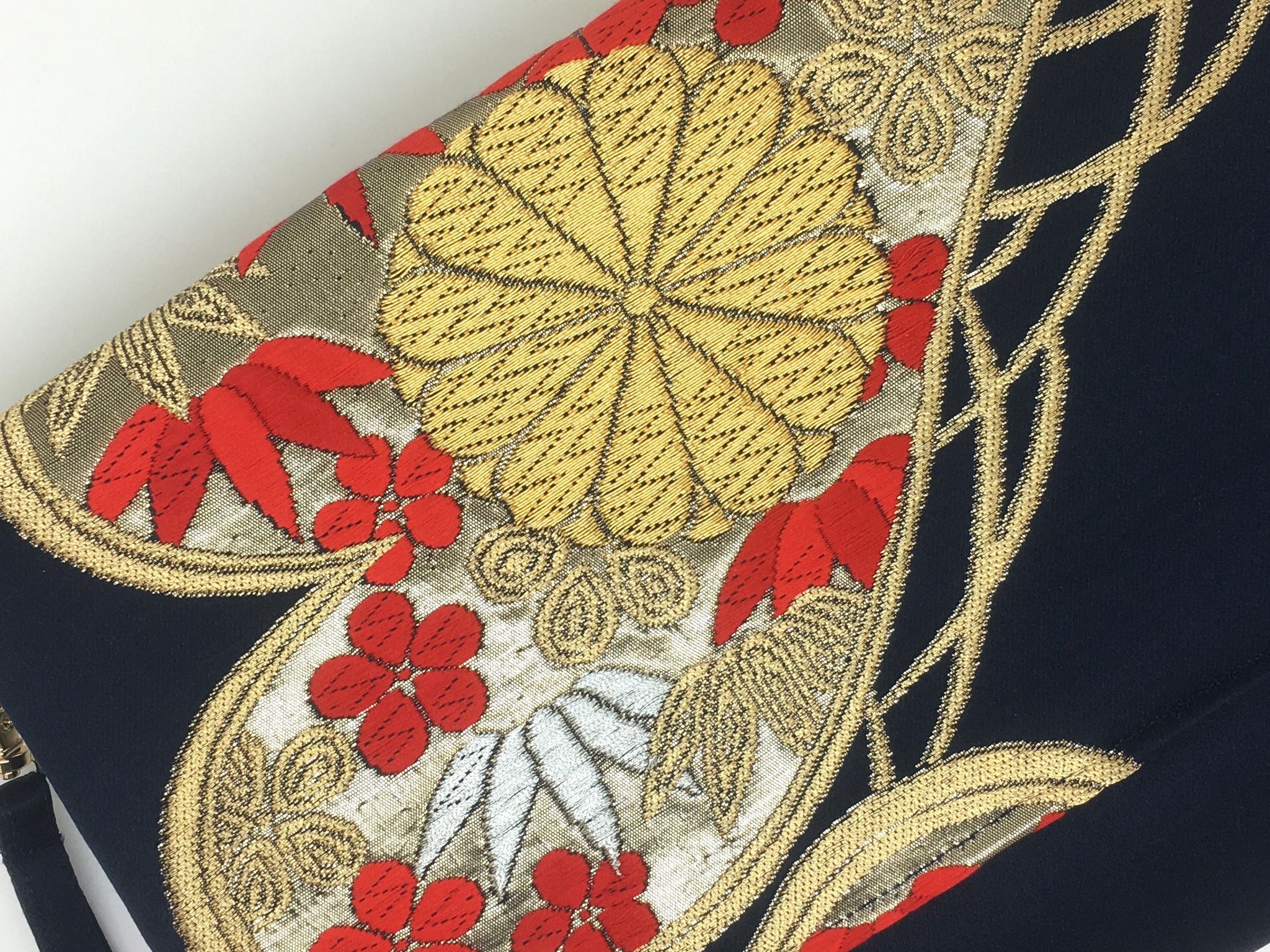 Recrafted from a Fukuro Obi, the sash worn over the kimono at formal occasions.This Fukuro Obi was sourced from the Osaka area of Japan. It is approximately 30 -40 years old, and in excellent condition.